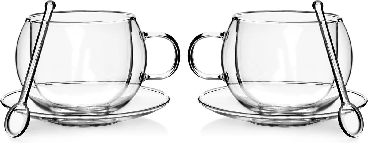 Geniet van je koffie zoals het bedoeld is: Geïsoleerde glazen zodat jouw kopje koffie, Latte Macchiato, cappuccino of thee langer op de perfecte temperatuur kunt houden en met volle teugen kunt blijven genieten van je heerlijke, warme drank. Tevens zijn de glazen goed te gebruiken voor koude dranken. De dubbelwandige wanden houden de drank lang koel en worden geleverd met een schotel en lepel.