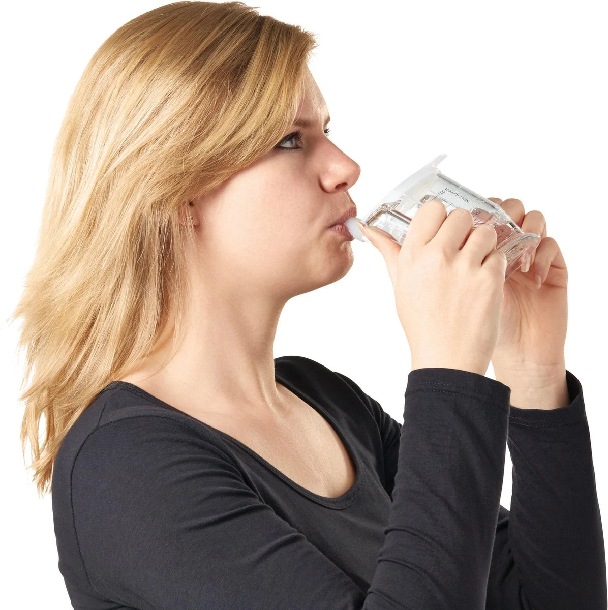De rand van de HandyCup is schuin, zodat men kan drinken zonder het hoofd naar achteren te buigen en zonder dat de neus de rand van de beker raakt. De beker is transparant, zodat de hoeveelheid vloeistof te zien is en wordt geleverd met deksel.