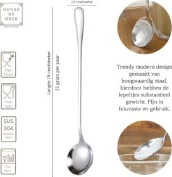 Gohh 6 Longdrink Lepels (18,5 Cm) Koffielepels Theelepels Vaatwasserbestendig Jamlepel Mosterdlepel