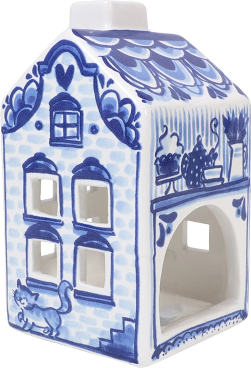 Met onder andere dit schattige theelicht huisje. Er komt sfeervol licht door de raampjes van het huisje. Versier je huis met dit theelicht huisje waar allerlei Hollandse Blond illustraties op staan en de spreuk Oost West Thuis Best!”