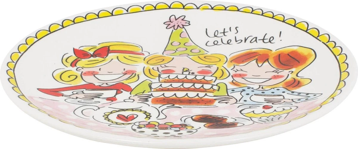 Let’s Celebrate! Deze taartbordjes van Even Bijkletsen maken jou tafel nog gezelliger. De taartbordjes hebben een diameter van 19 cm. De opvallende en kleurrijke illustraties kenmerken de Even Bijkletsen lijn van de twee vriendinnen uit Amsterdam: een servieslijn met een knipoog. Ook leuk om te combineren met de andere sets van Even Bijkletsen. A bit of Blond every day!
