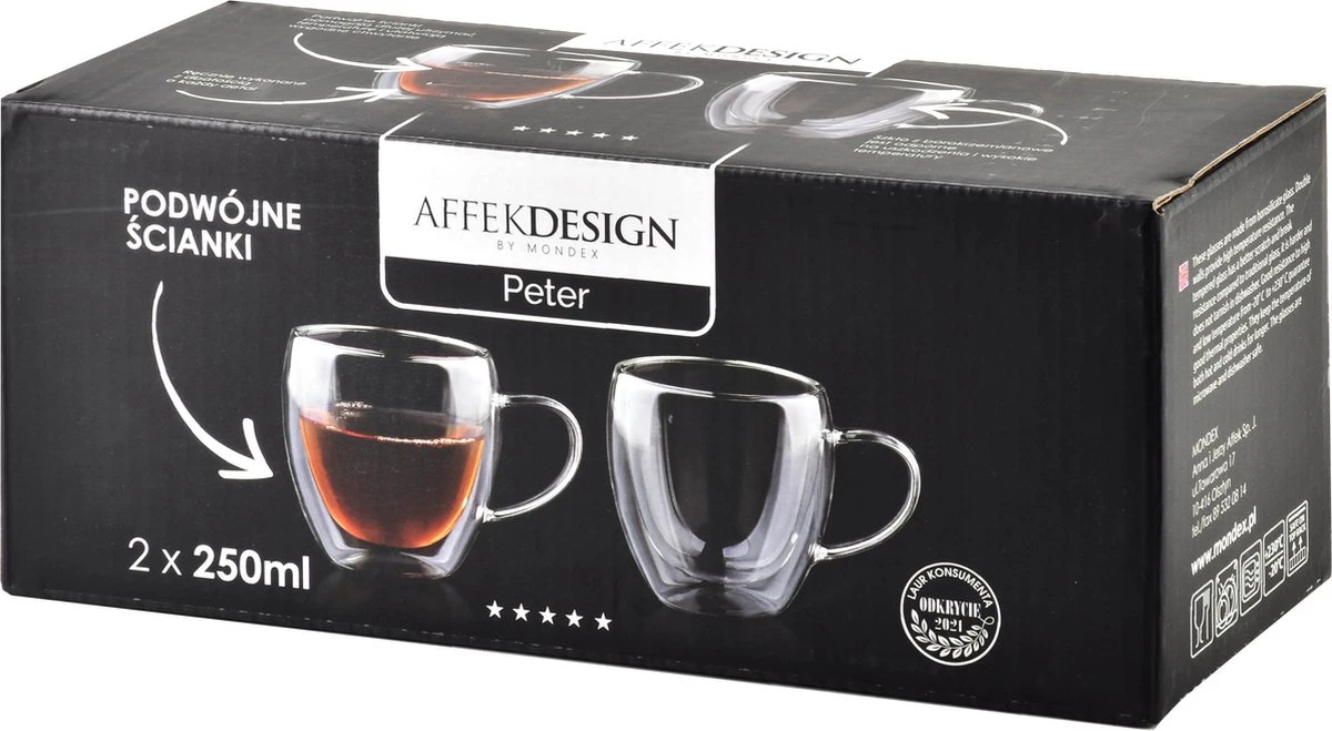 Glazen gemaakt van borosilicaatglas. De dubbele wanden zijn bestand tegen hoge temperatuur. Het merk Affekdesign biedt een set van 2 thermische glazen, waar je zowel warme als koude dranken kunt serveren. De glazen zijn geschikt voor het opwarmen van dranken in de magnetron. Kan worden gebruikt met een vaatwasser, maar het wordt aanbevolen om deze op de bovenste plank van de vaatwasser te plaatsen.