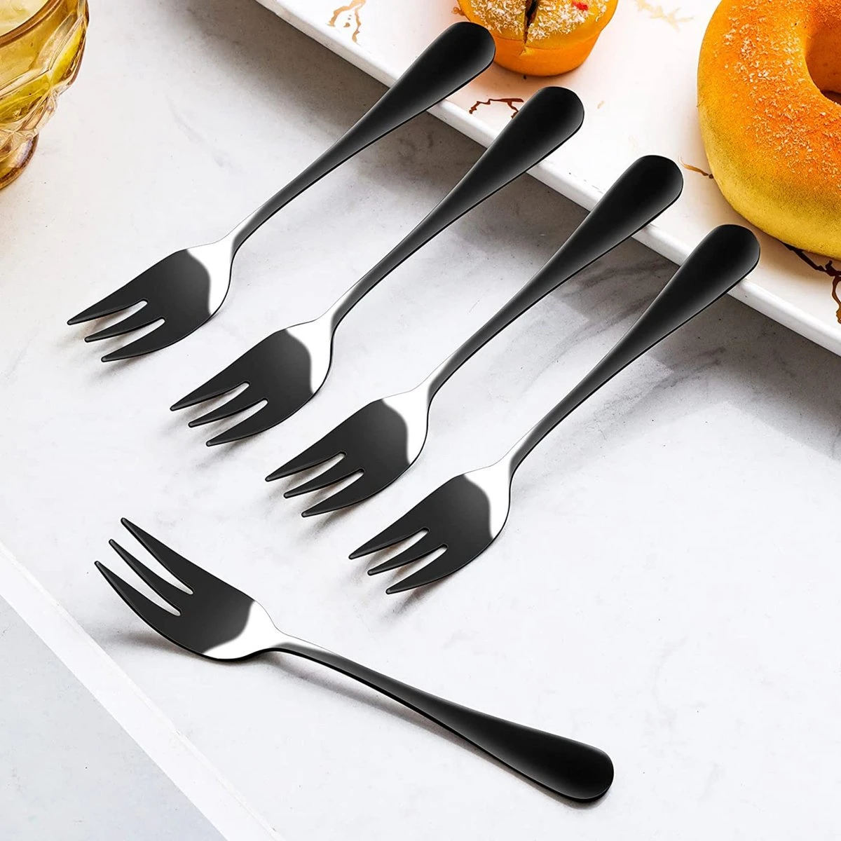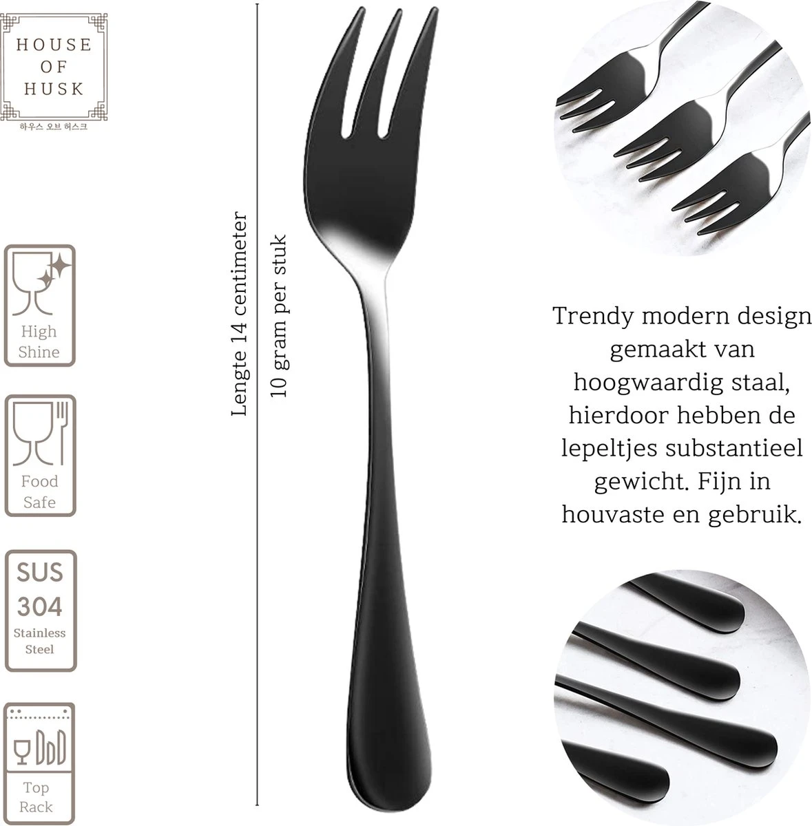 House Of Husk® Gebaksvorkjes – Dessertvorken – Taartvorkjes – Cocktailvorken – Klein Vorkjes – 12 Stuks – RVS – Zwart