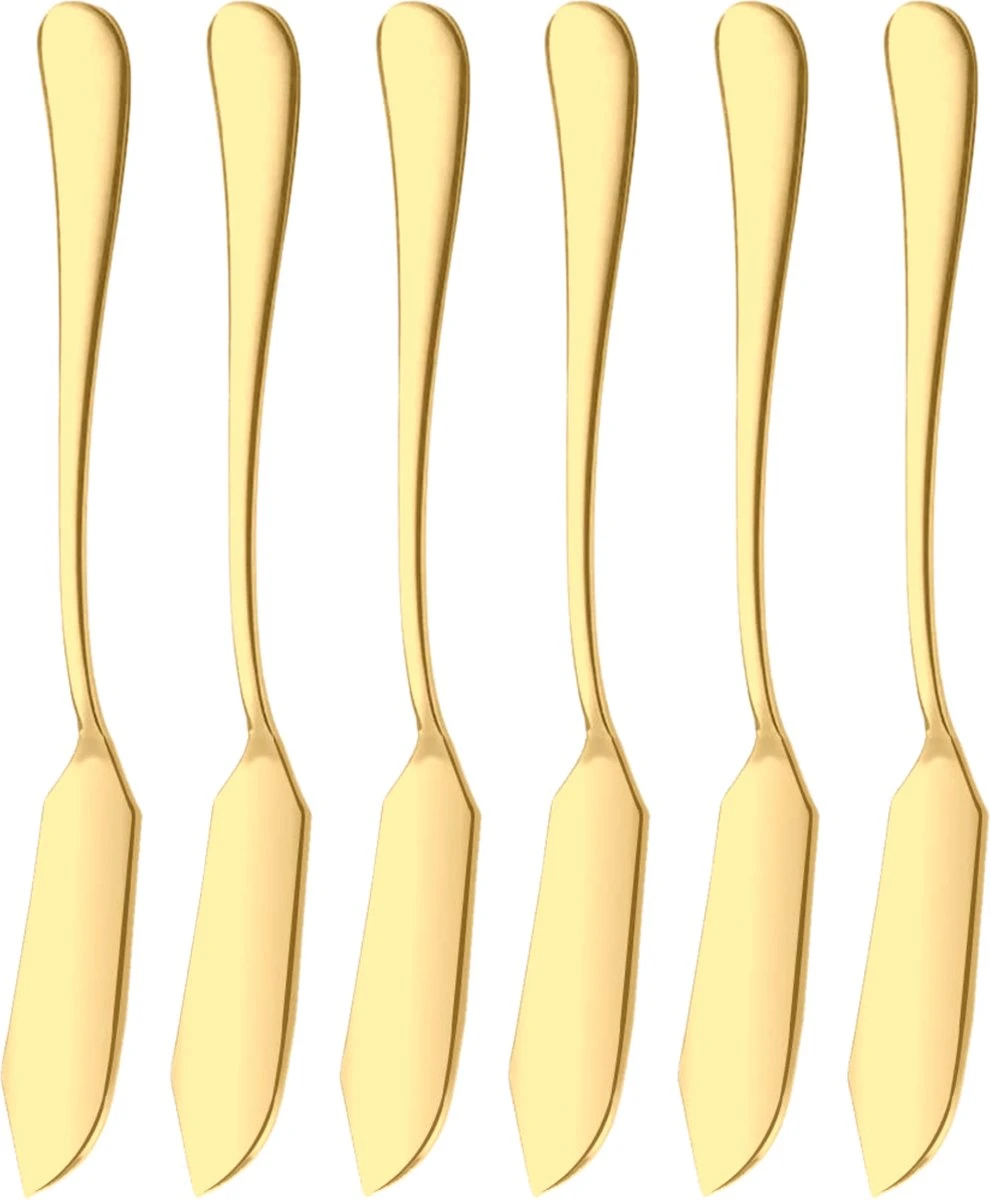 House Of Husk Botermesjes Set – Goud – RVS – Botermes – Smeermessen – Tapas Mesjes – 6 Stuks