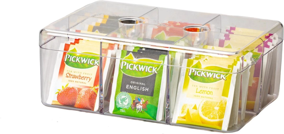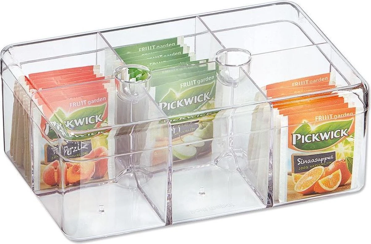 Nog altijd de thee in the theedoosjes aan het bewaren? De ronde theedoos van Mepal biedt een ideale oplossing voor iedere theeliefhebber! Het ronde transparante model zorgt voor een kleurrijk uiterlijk dat je zelf in kan delen. Met 6 vakken biedt de theedoos 6 opbergruimtes voor uw favoriete smaken. De theedoos is gemakkelijk te reinigen aangezien deze in de vaatwasser kan.