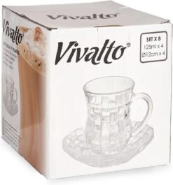 Set Van 6x Stuks Luxe Koffieglazen 170 Ml Met Oor – Type Diamant – Transparant Stevig Kwaliteitsglas