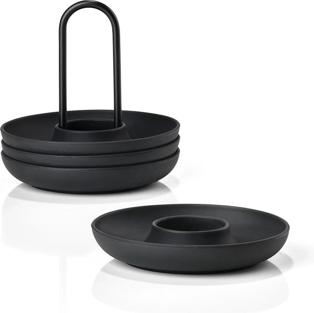 | Verpakkingsinhoud | 4 zwarte siliconen eierdopjes met metalen houder |